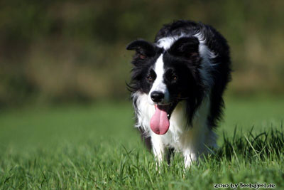 Am liebsten mach ich jedoch mit Kirstin Wollköpfe schubbsen. Hüten nennen das die Menschen! Das macht mir wohl am meisten Spaß. Gut, anfangs wollte Kirstin nicht schnell genug mit mir die Wollköpfe hin- und her scheuchen. Sie stand da rum und rief mich ständig, ich sollte die Wollköpfe so sortieren, wie sie das wollte. Mir war es ja erst egal, hauptsache sie rennen. Mittlerweile mache ich das wohl richtig schön! Die Menschen sind da sehr zufrieden mit mir und sagen, ich hätte noch reichlich potential.