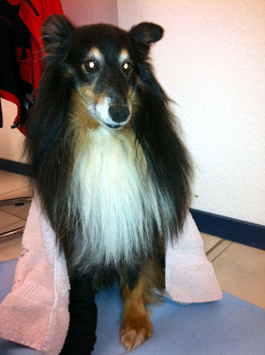 So richtig begeistert wirkt er nicht...aber schließlich wurde Benji gestern erst operiert (Ausrede haben wir genügend auf Lager)!