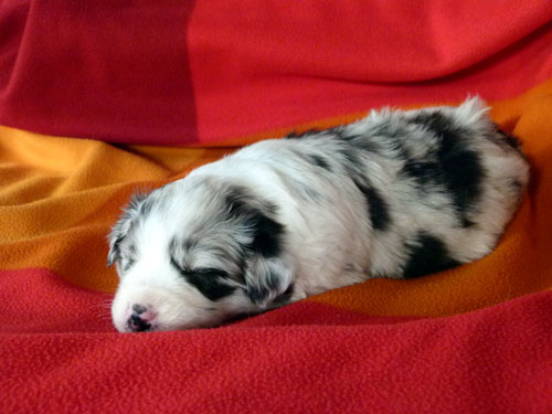 Es gibt nicht wirklich was Neues. Jo entwickelt sich weiterhinn prächtig. Auch das Sozialverhalten beim Welpenspiel ist toll geworden (sie galt als kleiner Haudegen...)! Sie spielt jetzt sehr schön im Gleichgewicht mit allen Welpen (außer mit dem "Pony", das ist ihr einfach zu groß).