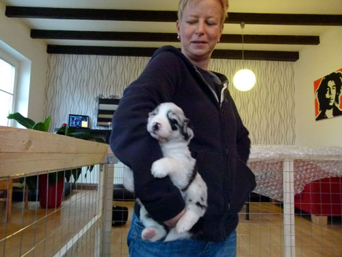 Der Zuchtwart war bei den Welpies und hat den ganzen Wurf als "wunderbar" eingestuft! Somit wurden nun auch die endgültigen Namen zum "Druck" in die Papiere bekannt gegeben! Unser Hund wird "Jo" gerufen! Der vollständige Name auf Jo´s Seite!
